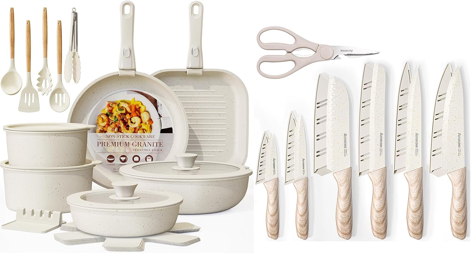 Astercook 23 Pcs Pots and Pans Set Non Stick with 13 Pieces Kitchen Knives Set